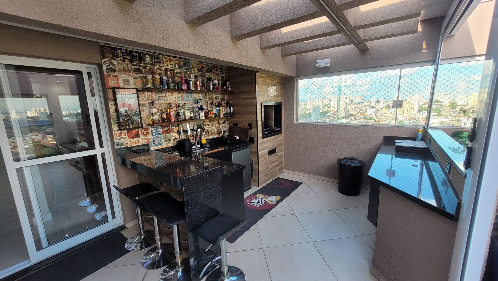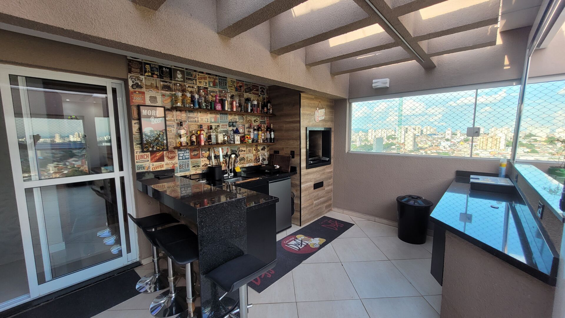 Persiana elétrica no espaço gourmet, adicionando praticidade e sofisticação.