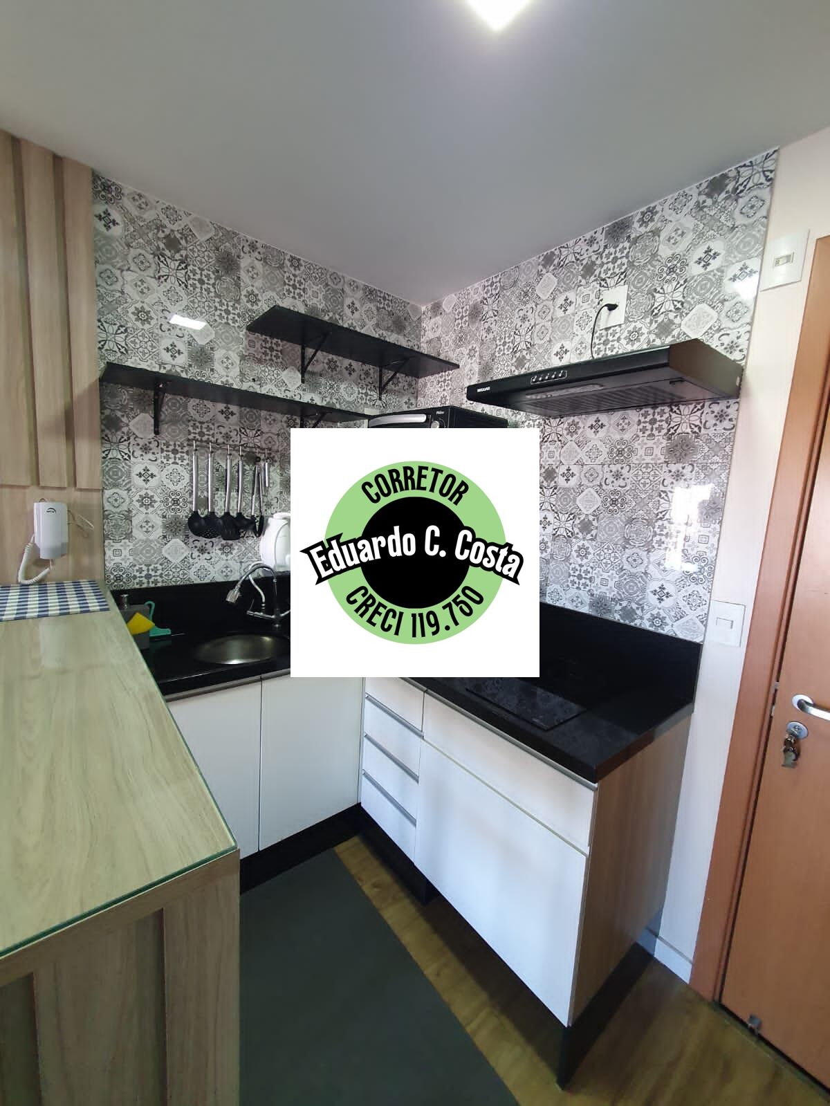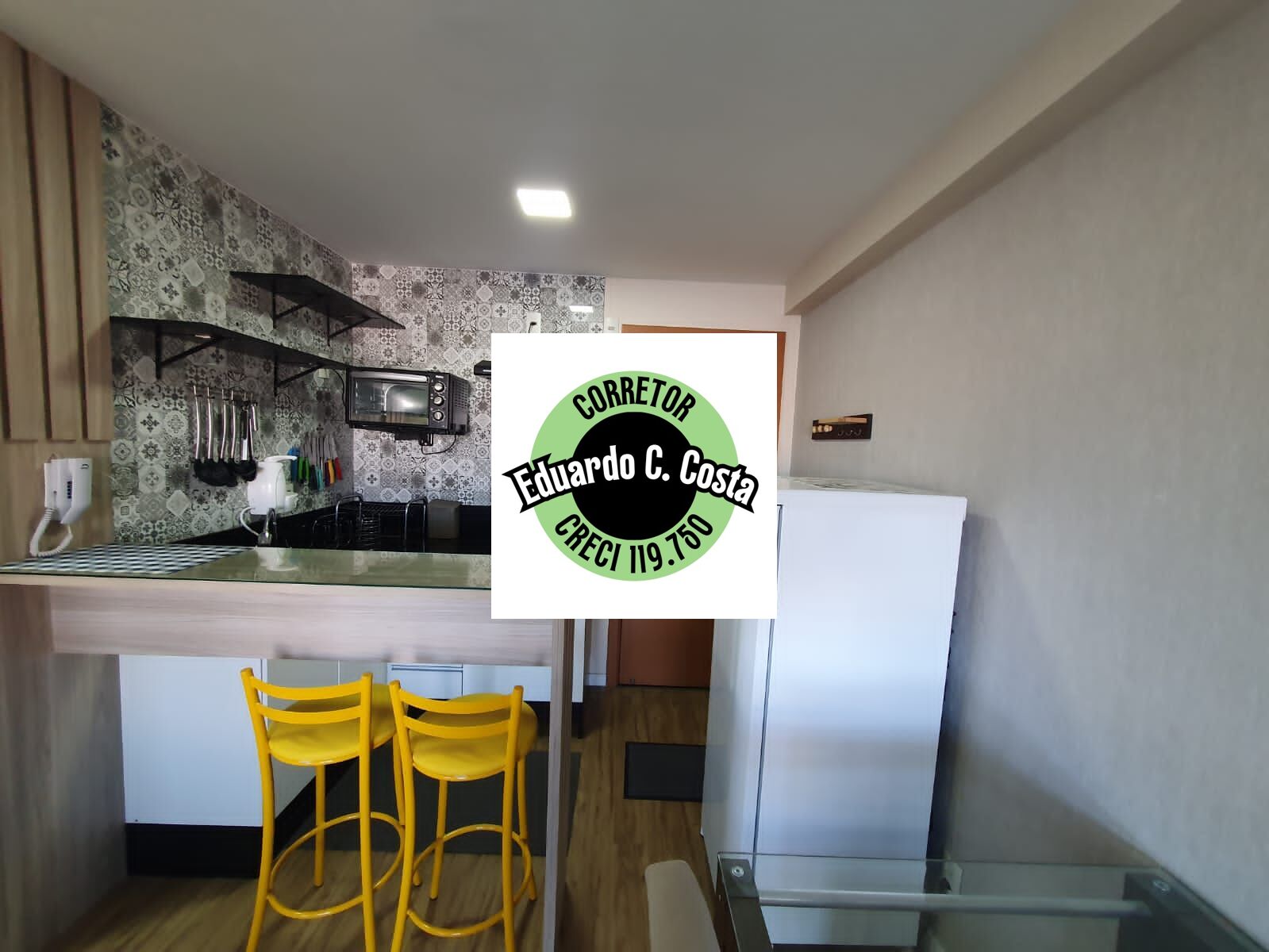 - Cozinha Completa: Equipada com armários, cooktop de indução elétrico, micro-ondas, geladeira e balcão com duas banquetas. Perfeita para refeições rápidas e práticas.